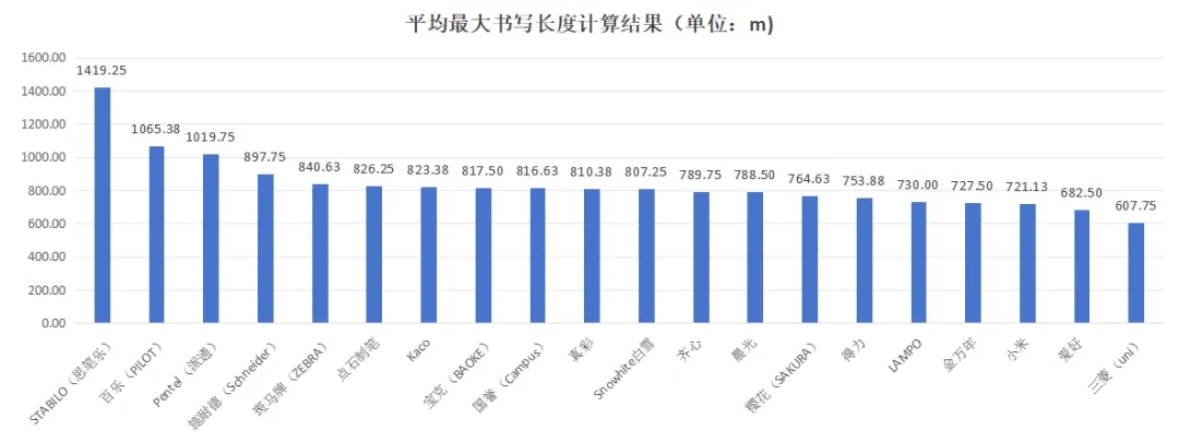 最大书写长度,是反映中性笔能正常书写的指标,是一支中性笔笔头-▪•、油墨及其配合度的综合性能体现。