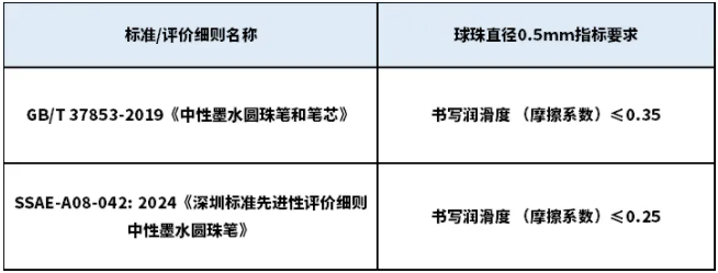 SSAE-A08-042: 2024《深圳标准先进性评价细则中性墨水圆珠笔》要求球珠直径0.5mm的中性笔,应划线m以上,线迹无明显断线▲、变淡现象。